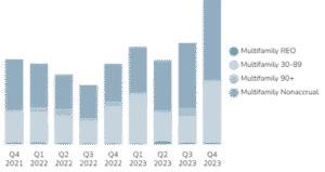 Banks reported another surge of multifamily loan defaults in Q4 2023. Not only did newly late loan volume double, but another $300M in already late